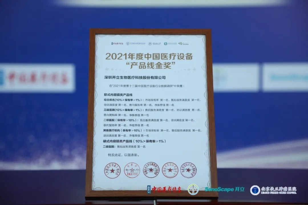同時,開立醫(yī)療還榮獲了中國醫(yī)療設備“產(chǎn)品線金獎”,在超聲影像類產(chǎn)品線與內(nèi)窺鏡類產(chǎn)品線評比中名列前茅,其中軟式內(nèi)窺鏡類產(chǎn)品線憑借卓越的產(chǎn)品質(zhì)量、優(yōu)秀的服務滿意度及市場保有率等多個維度上均排名第一。