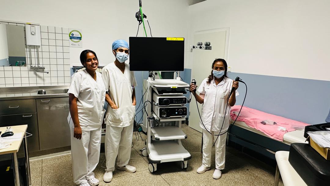 落后的醫(yī)療條件和多樣化的醫(yī)療需求是擺在每個(gè)醫(yī)療隊(duì)員面前的現(xiàn)實(shí)問(wèn)題,為了提高當(dāng)?shù)氐尼t(yī)療服務(wù)水平、改變當(dāng)?shù)鼐用窬歪t(yī)難的現(xiàn)狀,在鄭州大學(xué)第二附屬醫(yī)院的儀器捐贈(zèng)下,奧洛特醫(yī)院引入了開(kāi)立醫(yī)療的內(nèi)鏡產(chǎn)品,以保障當(dāng)?shù)氐木歪t(yī)需求。