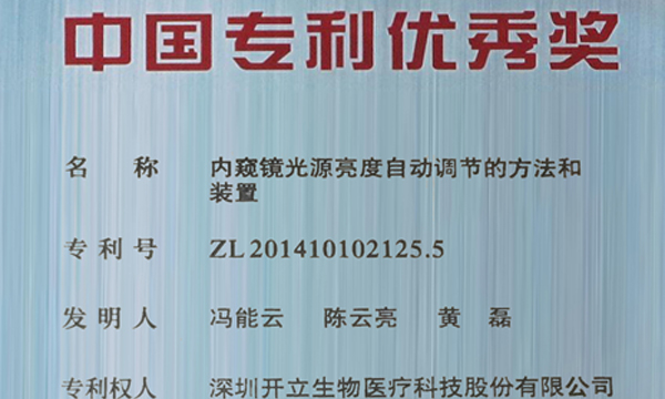 深圳開立生物醫(yī)療科技股份有限公司的專利《內窺鏡光源亮度自動調節(jié)的方法和裝置》,經中國醫(yī)療器械行業(yè)協(xié)會推薦,榮獲2017年“中國專利優(yōu)秀獎”。